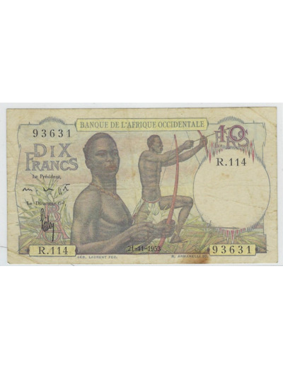 B.A.O. BANQUE DE L'AFRIQUE OCCIDENTALE 10 FRANCS 21-11-1953 SERIE R114 TB+