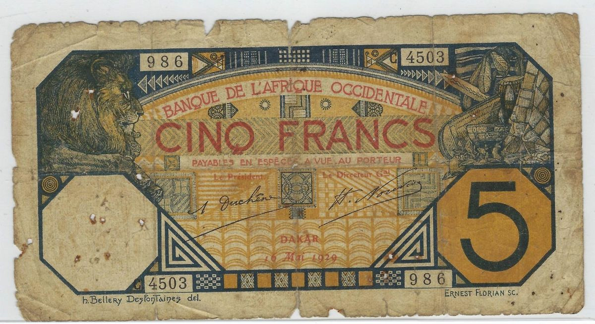 B.A.O. BANQUE DE L'AFRIQUE OCCIDENTALE( DAKAR ) 5 FRANCS 16-05-1929 SERIE C4503 B+