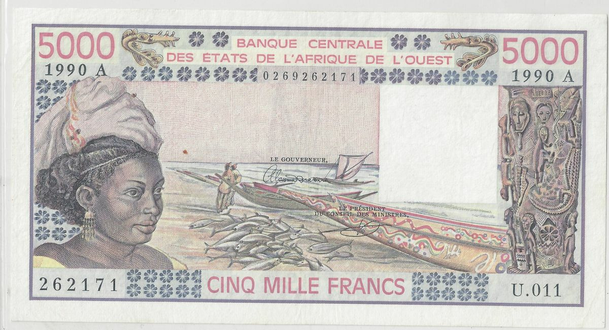 B.C.E.A.O (COTE D'IVOIRE ) 5000 FRANCS 1990 SUP