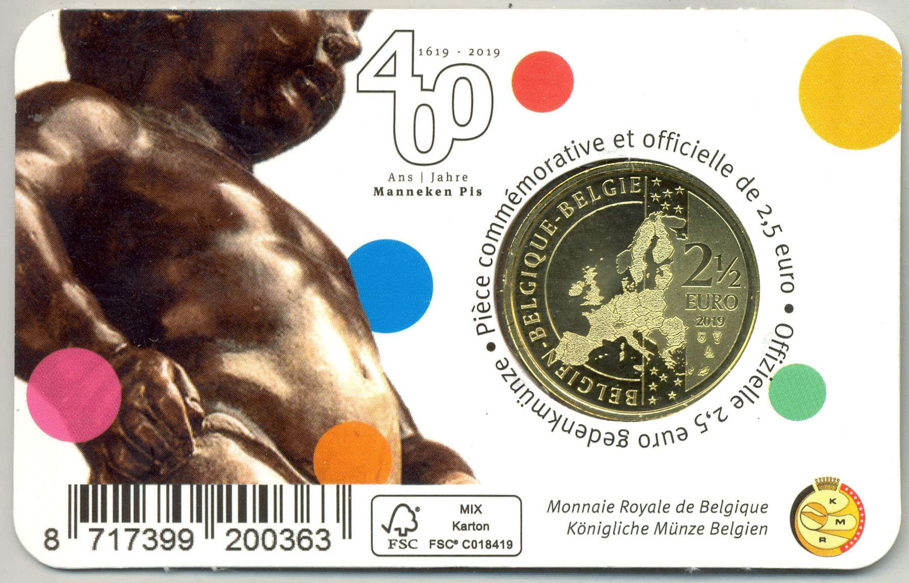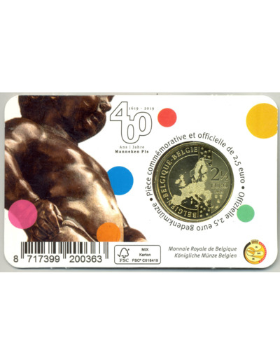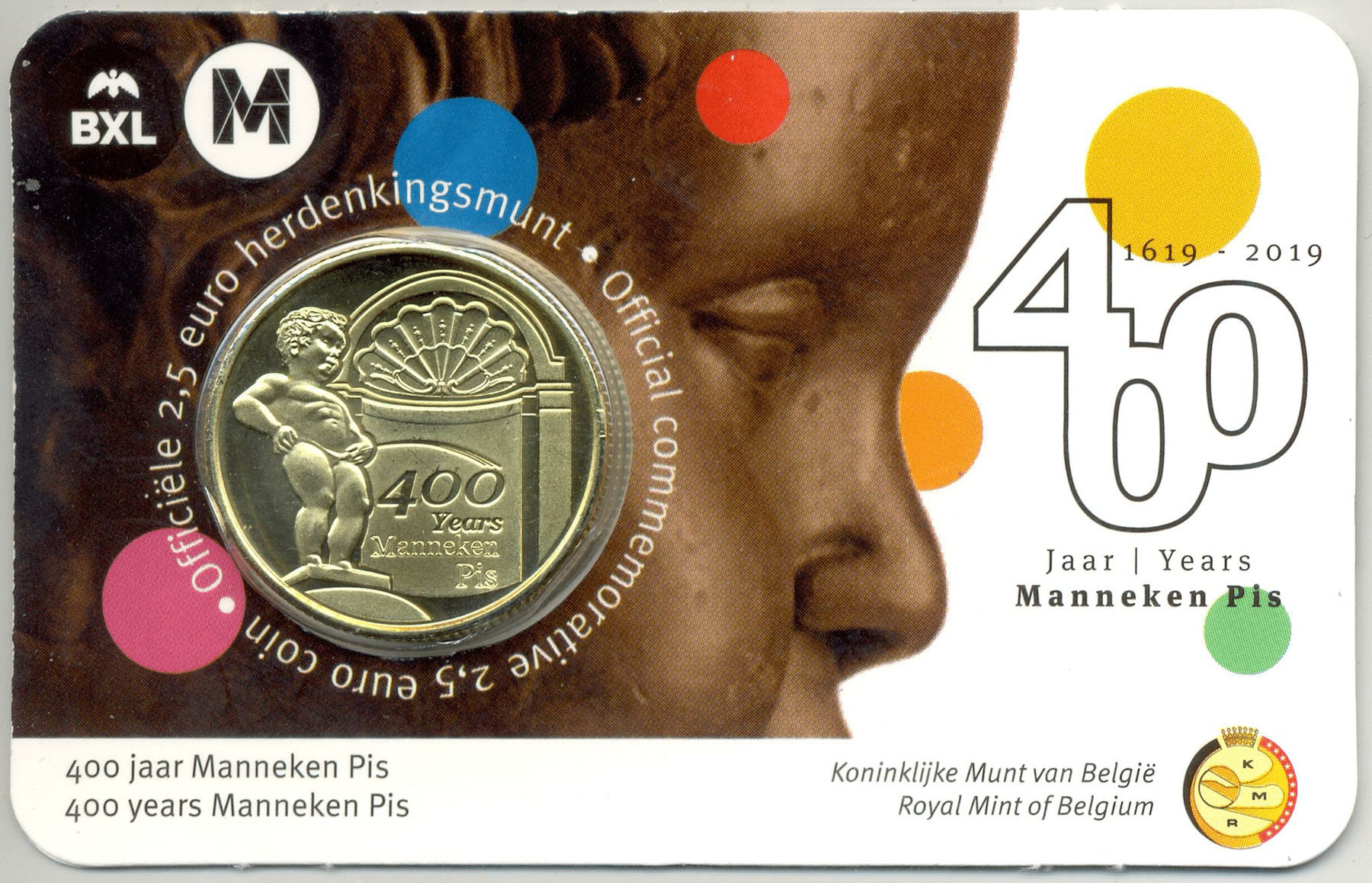 BELGIQUE 2019 2.50 EURO 400 ANS MANNEKEN PIS COINCARD VERSION FLAMANDE
