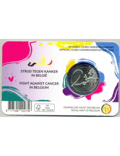 BELGIQUE 2024 2 EURO LUTTE CONTRE LE CANCER COINCARD VERSION FRANCAISE