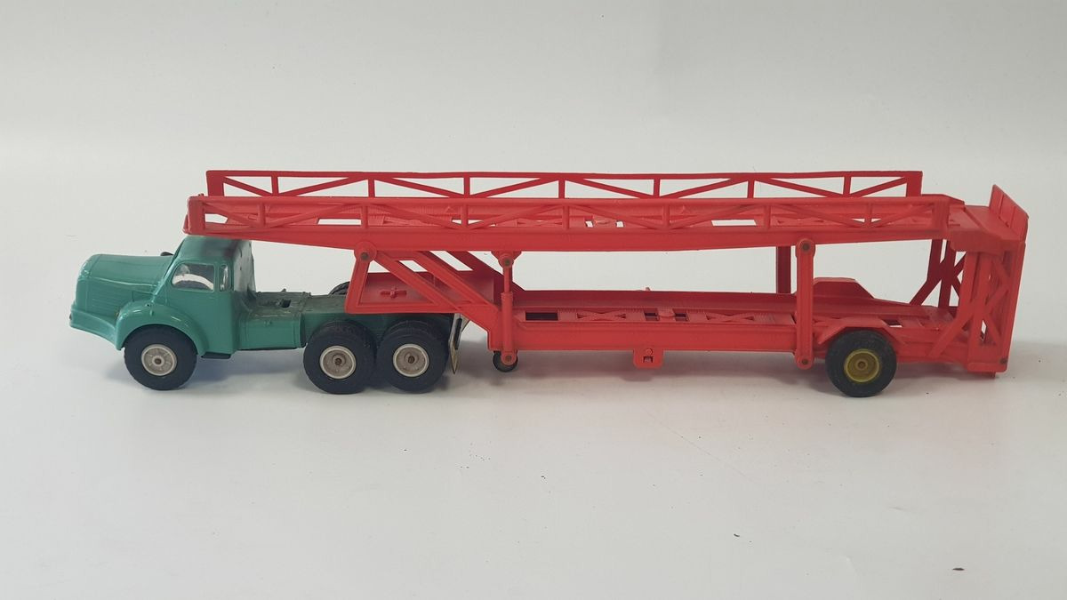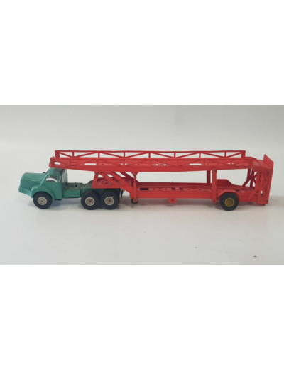 BERLIET TRACTEUR TBO 15 VERT AVEC REMORQUE PORTE VOITURE ROUGE NOREV PLASTIQUE 1/43 SANS BOITE voir état