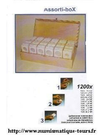 BOITE EN BOIS avec 1200 ETUIS A AGRAFER comprenant les 10 tailles de 17.5 à 39.5 mm