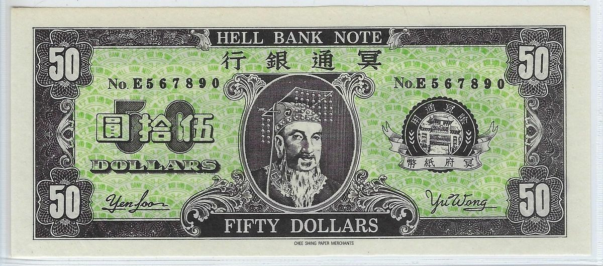 CHINE 50 DOLLARS HELL BANK NOTE (BILLET FUNERAIRE) SERIE E NEUF N2