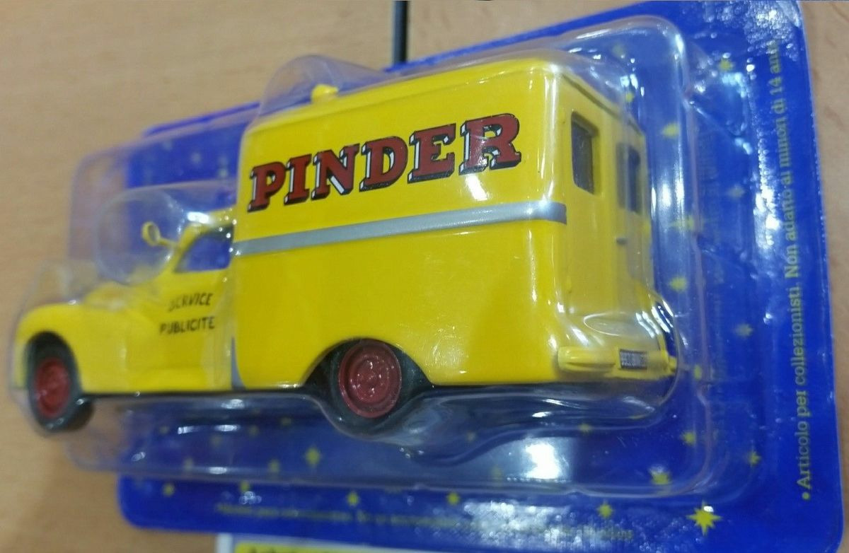 Cette camionnette d'affichage du cirque, fut à l'origine achetée par Pinder en 1950, la miniature au 1/43ème bénéficie d'un bon rendue, tant au niveau de la gravure que des détails captés. On retrouve ainsi sur ce modèle réduit aux formes justes la reproduction du pot de colle servant a encoller les affiches, ainsi qu' un mini projecteur de toit permettant aux colleurs d'affiches de travailler la nuit. Les 203 carrossées de cette façon étaient surnommée "pot a tabac" par leurs utilisateurs.