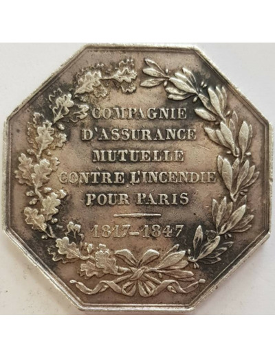 JETON D'ASSURANCE - COMPAGNIE D'ASSURANCE MUTUELLE CONTRE L'INCENDIE POUR PARIS 1817-1847 ARGENT TTB