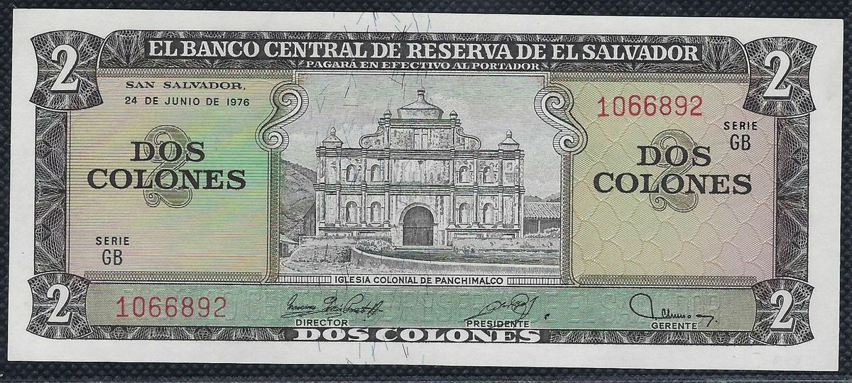 EL SALVADOR 2 COLONES 24-01-1977 Série GB 892 SPL