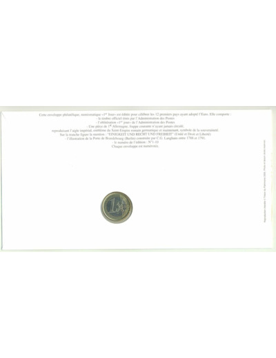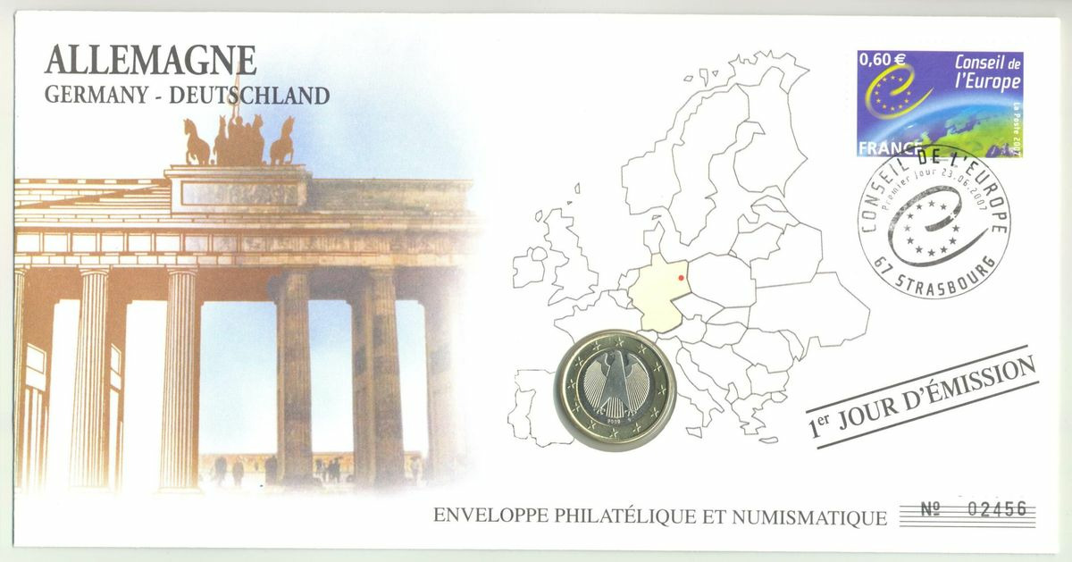 PREMIER JOUR ENVELOPPE PHILATELIQUE NUMISMATIQUE CONSEIL DE L'EUROPE 1 EURO ALLEMAGNE 2002 G