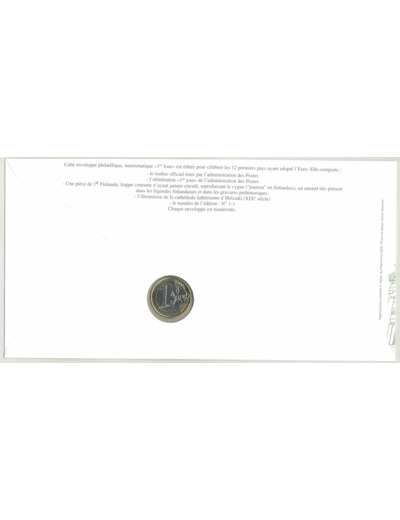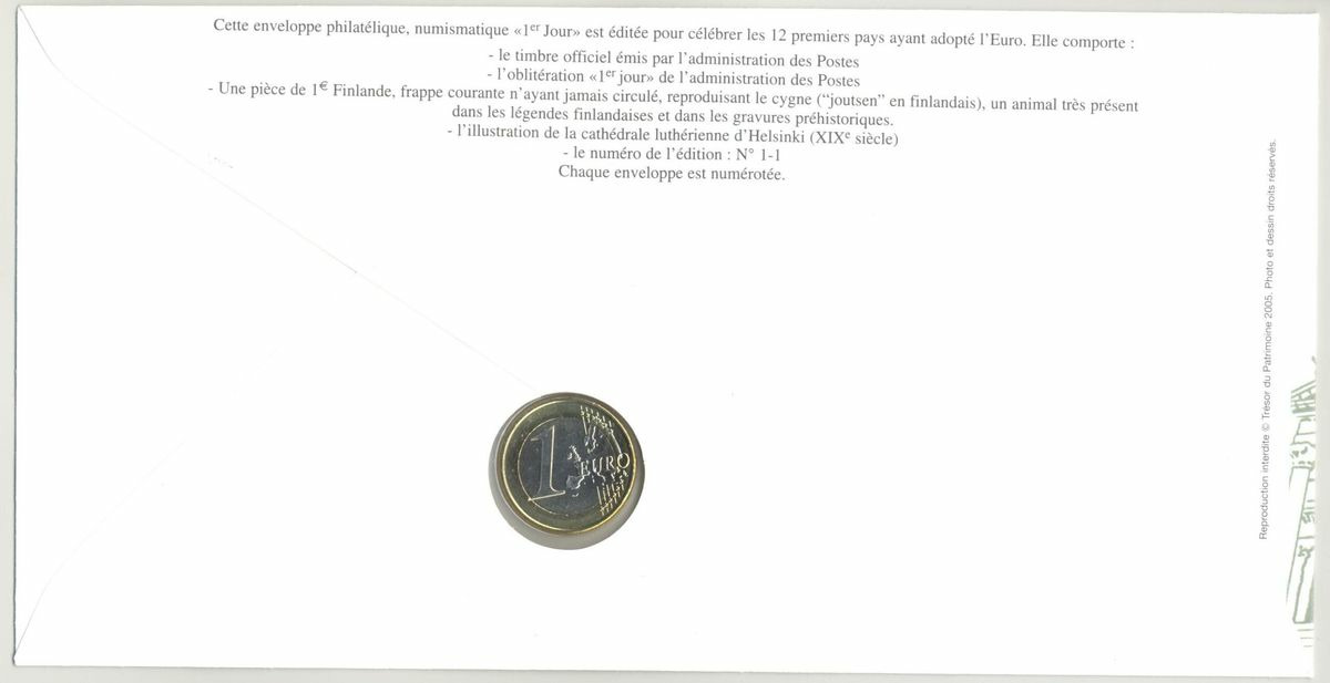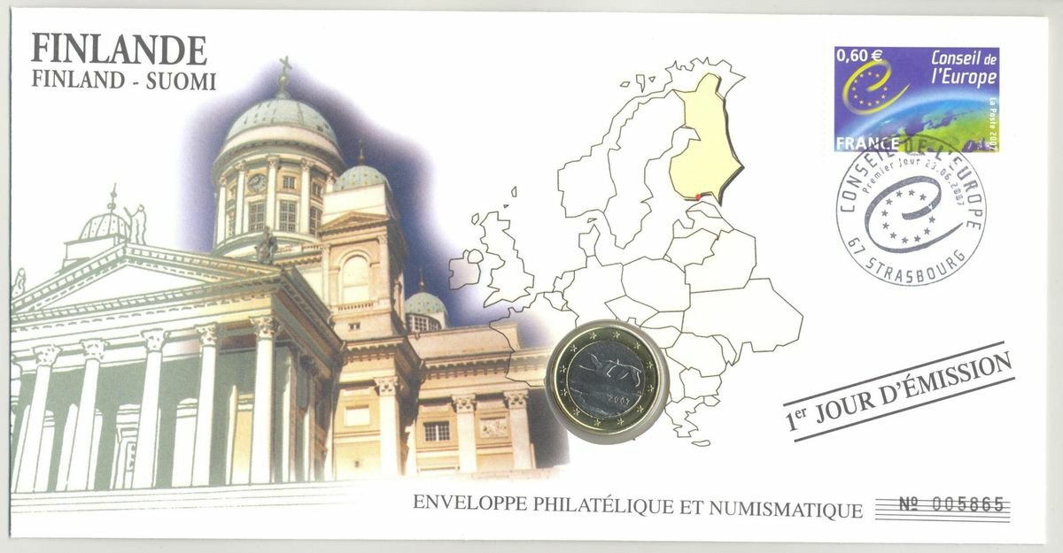 PREMIER JOUR ENVELOPPE PHILATELIQUE NUMISMATIQUE CONSEIL DE L'EUROPE 1 EURO FINLANDE 2007