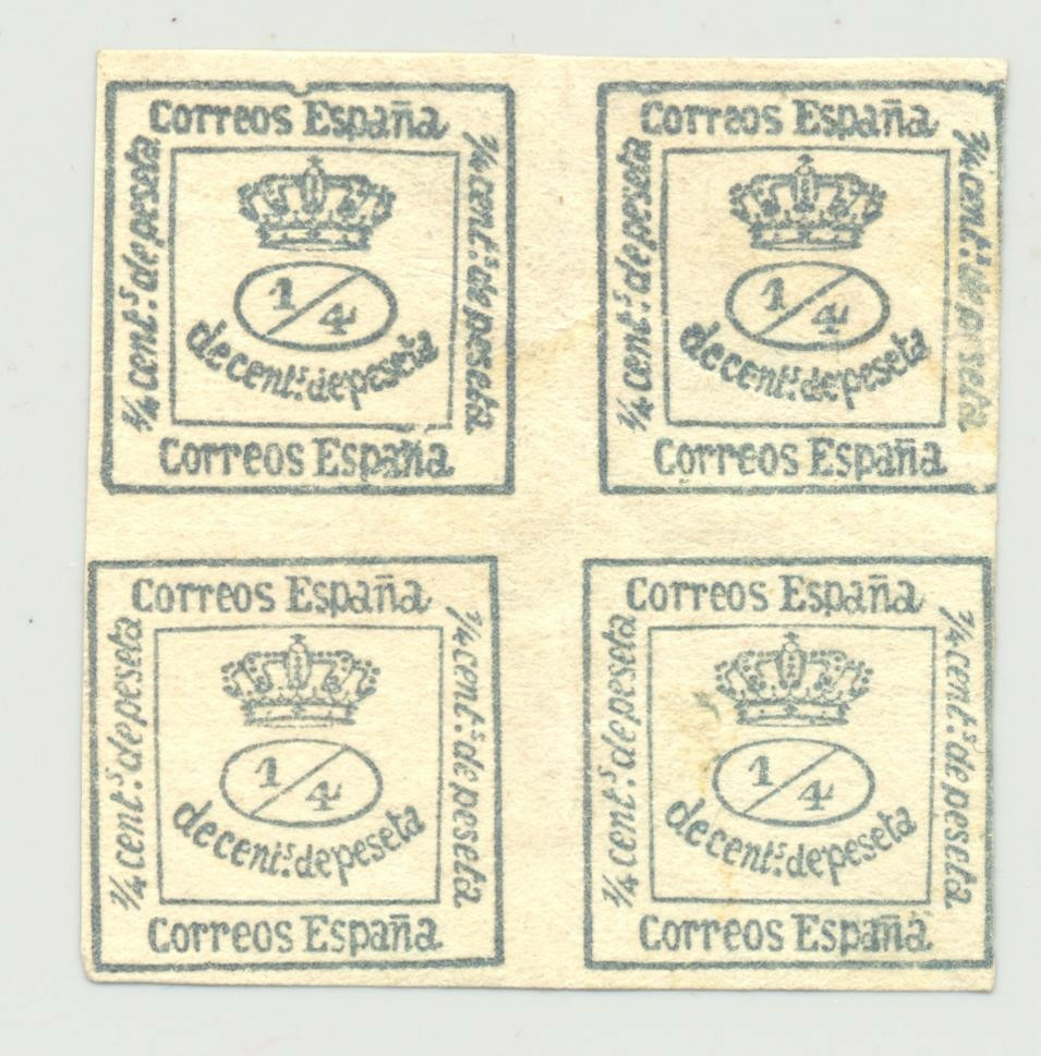 ESPAGNE 1/4 PESETA 1873 Yvert 140 ENSEMBLE DE 4 TIMBRE NEUF Charnière
