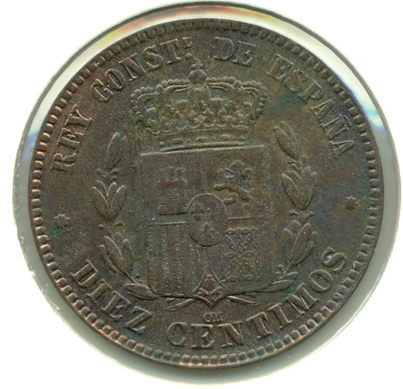ESPAGNE 10 CENTIMOS 1878 OM TTB+