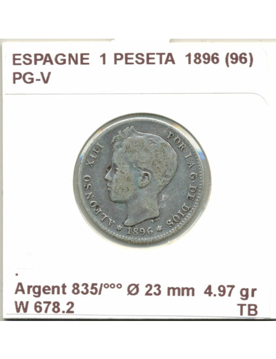 Espagne ( SPAIN ) 1 PESETA 1896 (96) PG-V TB