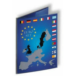 Pochette spéciale pour les series d'EURO - Outil indispensable pour le transport pendant les échanges et pour les protéger. Pochette en plastique translucide contenant un carton renforcé avec des alvéoles pour y insérer un jeu complet d' EURO. Ainsi vous pouvez voir les pièces des 2 côtés .