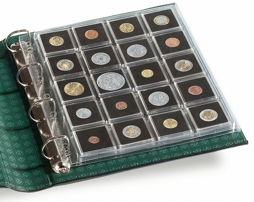 Feuilles en plastique transparent et solide, pour classer 20 MONNAIES sous capsules QUADRUM MINI.