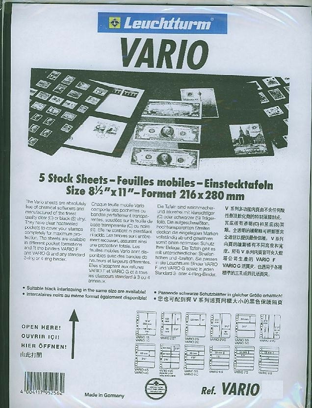 Les feuilles Vario S sont compatibles avec les reliures Vario F, Vario G et Vario Classic . Feuilles en plastique, noires à bandes translucides soudées recto verso.