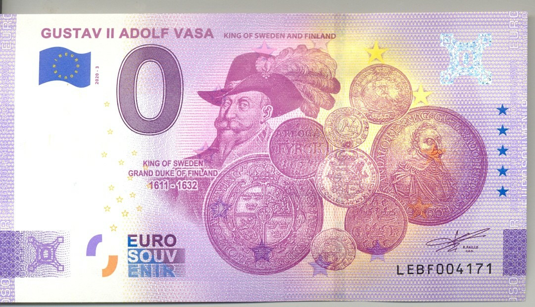 FINLANDE 2020-3 GUSTAV II ADOLF VASA VERSION ANNIVERSAIRE BILLET SOUVENIR 0 EURO TOURISTIQUE NEUF