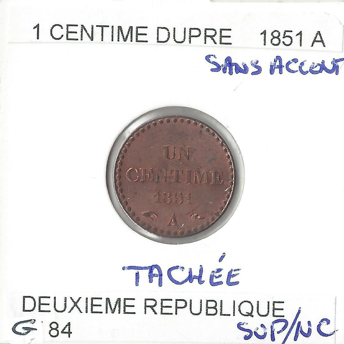 1 CENTIME DUPRE 1851 A Tachee SUP NC