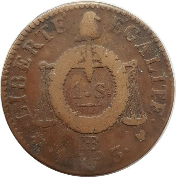 FRANCE 1 SOL AUX BALANCES 1793 BB (Strasbourg) 11gr36 TB+