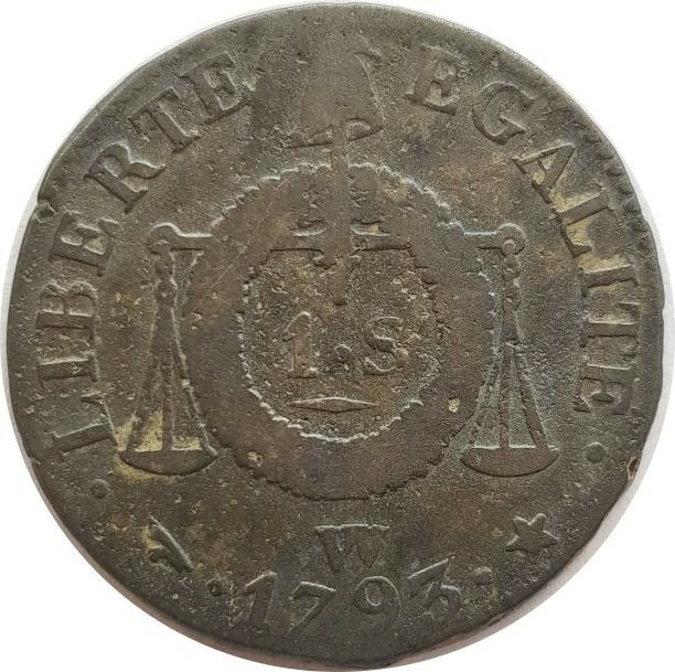 FRANCE 1 SOL AUX BALANCES 1793 W (Lille) 11gr63 TB