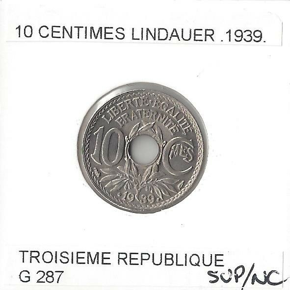 10 CENTIMES LINDAUER .1939. SUP/NC