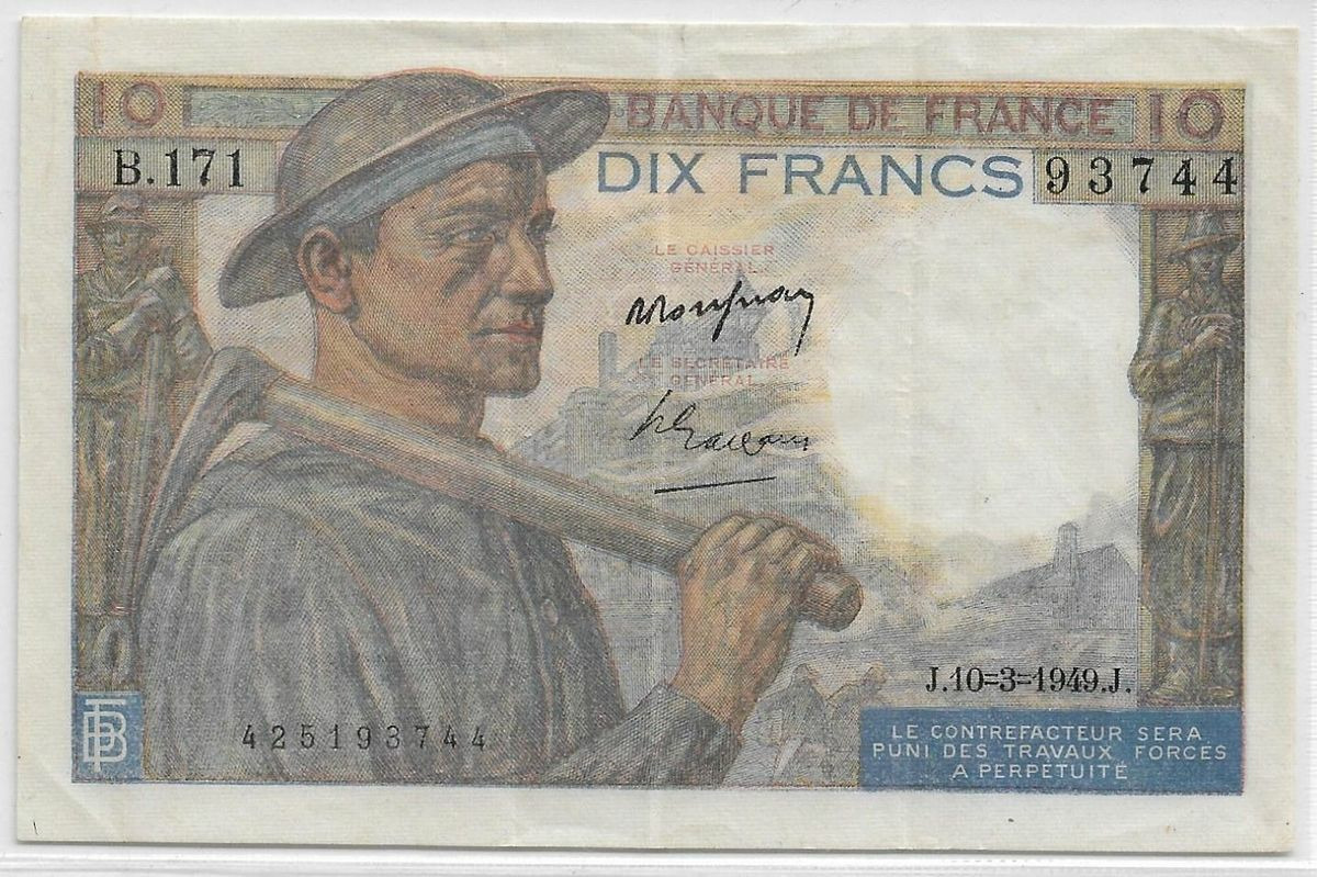 FRANCE 10 FRANCS MINEUR SERIE B.171 10-3-1949 SUP