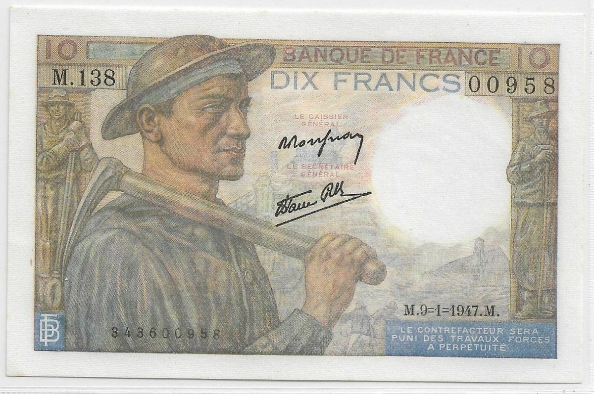 FRANCE 10 FRANCS MINEUR SERIE M.138 9-1-1947 SPL 958