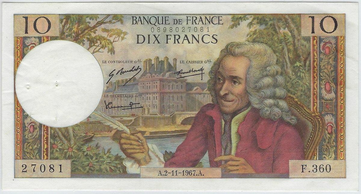 FRANCE 10 FRANCS VOLTAIRE 2-11-1967 F.360 SPL