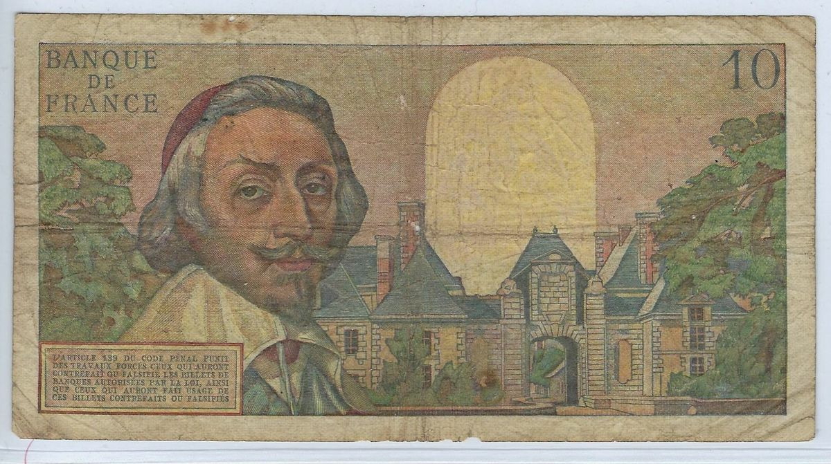 FRANCE 10 NOUVEAUX FRANCS RICHELIEU 7-6-1962 J.223 TB