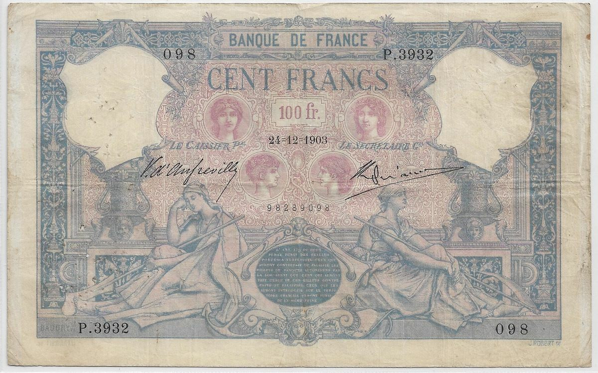 FRANCE 100 FRANCS BLEU ET ROSE SERIE P.3932 24-12-1903 TB+