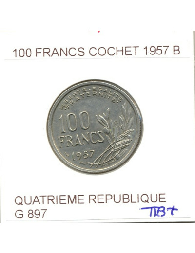 FRANCE 100 FRANCS COCHET 1957 B TTB+