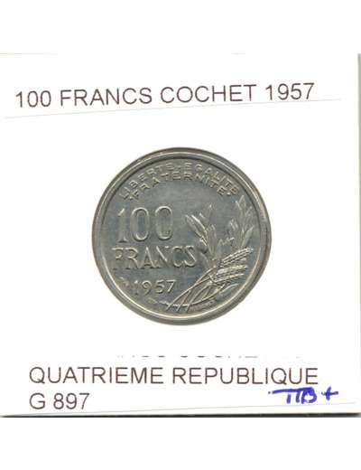 FRANCE 100 FRANCS COCHET 1957 TTB+