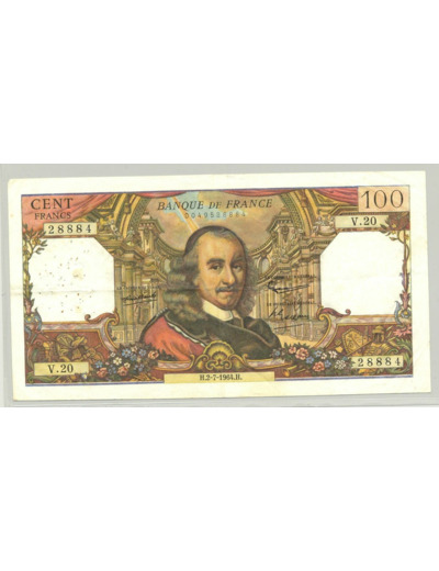 FRANCE 100 FRANCS CORNEILLE SERIE V.20 02 07 1964 TTB