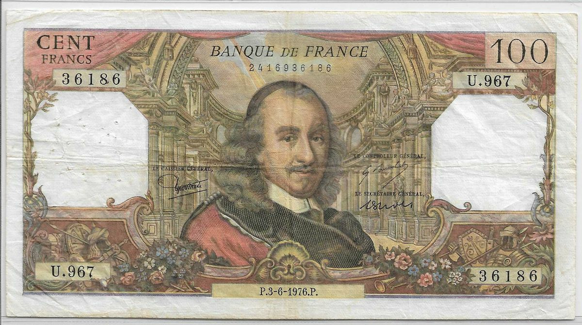 FRANCE 100 FRANCS CORNEILLE 3-6-1976 U.967 TB+