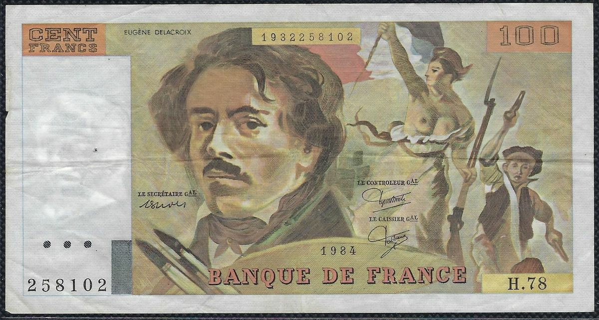 FRANCE 100 FRANCS DELACROIX 1984 SERIE H.78 TTB