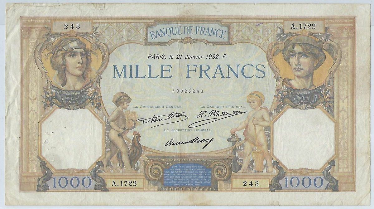 FRANCE 1000 FRANCS CERES ET MERCURE 21 01 1932 SERIE A.1722 TTB