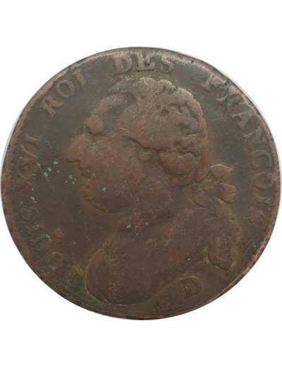 FRANCE 12 DENIERS FRANÇOIS 1792 L'an 4 D (Lyon) 10gr97 B