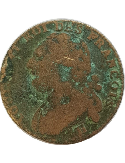 FRANCE 12 DENIERS FRANÇOIS 1792 an 4 H (La Rochelle) 10gr04 B+