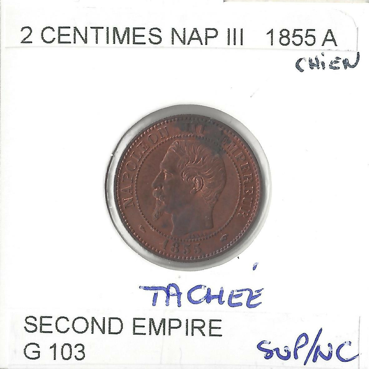 2 CENTIMES NAPOLEON III 1855 A Tête de Chien tachee SUP NC
