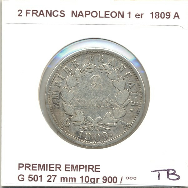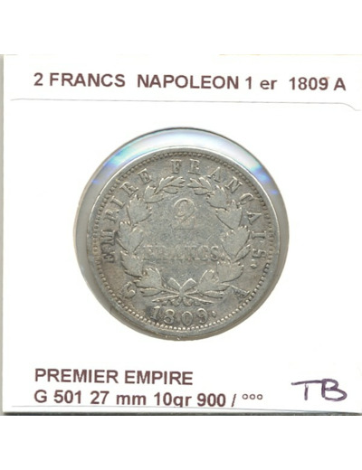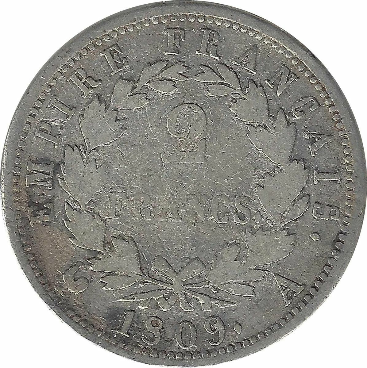 FRANCE 2 FRANCS NAPOLEON 1 er 1809 A TB