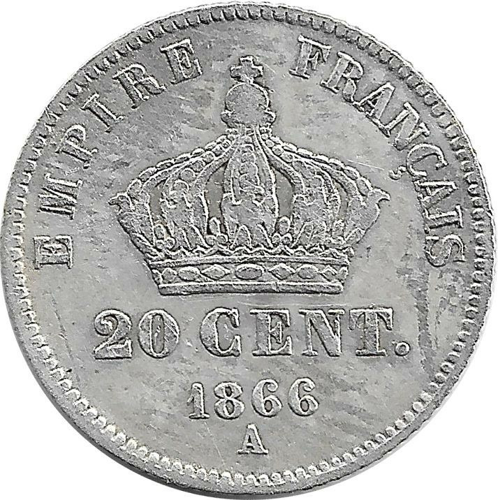 FRANCE 20 CENTIMES NAPOLEON III 1866 A TB+