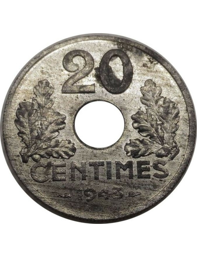 FRANCE 20 CENTIMES TYPE 20 1943 SUP+