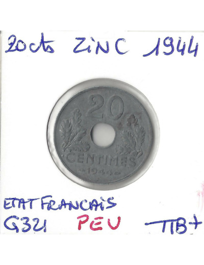 20 CENTIMES ZINC 1944 PEU TTB+