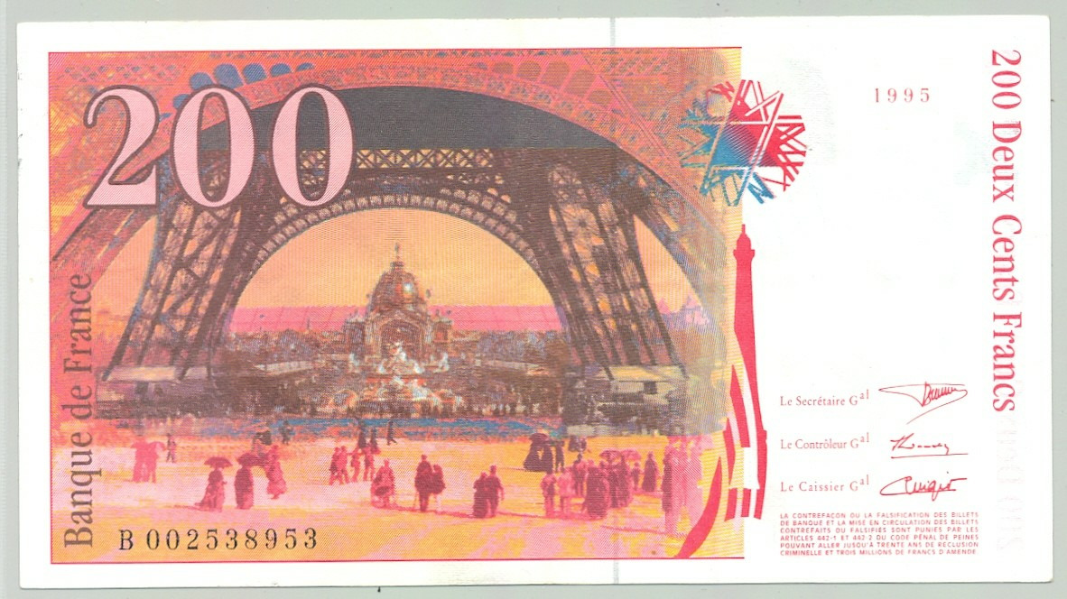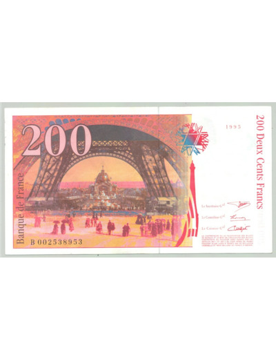FRANCE 200 FRANCS EIFFEL 1995 Alphabet B 0025 SUP