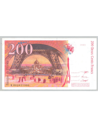 FRANCE 200 FRANCS EIFFEL 1995 Alphabet K 002822306 SUP