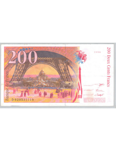 FRANCE 200 FRANCS EIFFEL 1996 Alphabet D 020531119 SUP