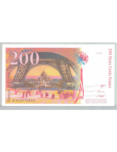 FRANCE 200 FRANCS EIFFEL 1996 ALPHABET K 885 NEUF