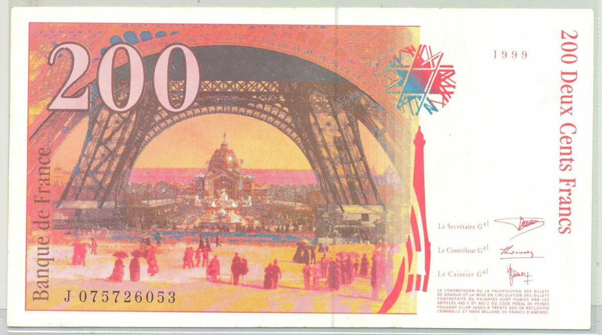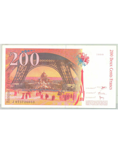 FRANCE 200 FRANCS EIFFEL 1999 ALPHABET F TTB