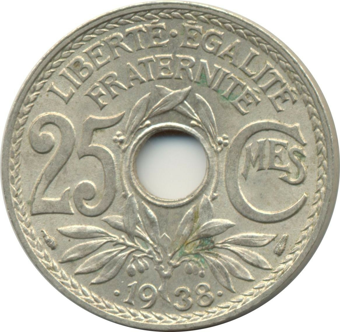 FRANCE 25 CENTIMES LINDAUER .1938. TTB+