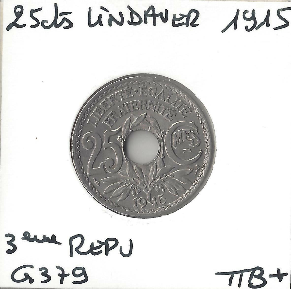 25 CENTIMES LINDAUER SOULIGNE 1915 TTB+