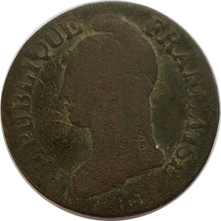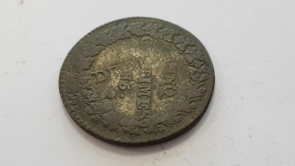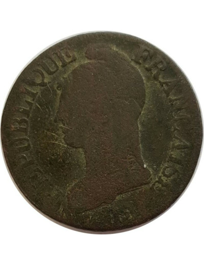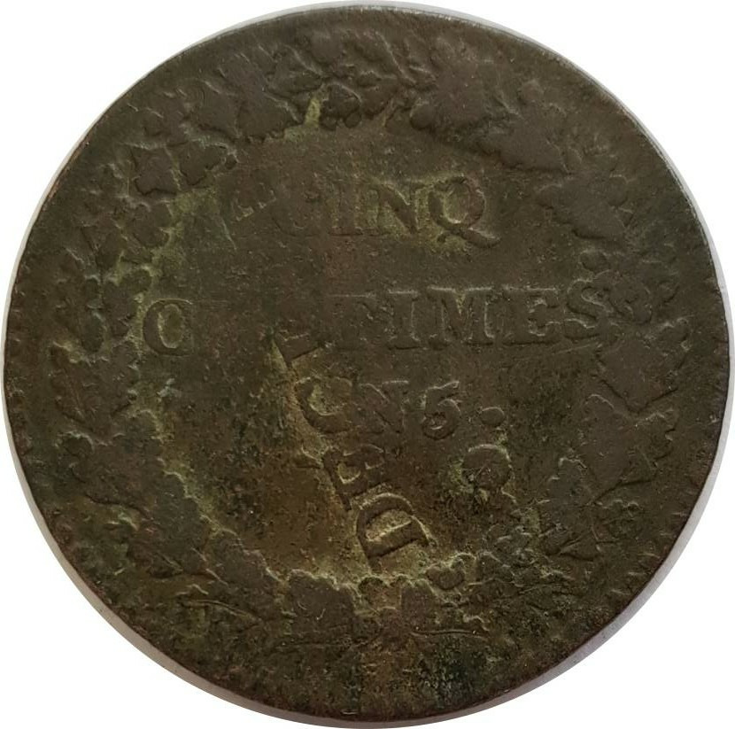 FRANCE 5 CENTIMES DUPRE SURFRAPPE DU DECIME AN 5 (I) TB 9gr19